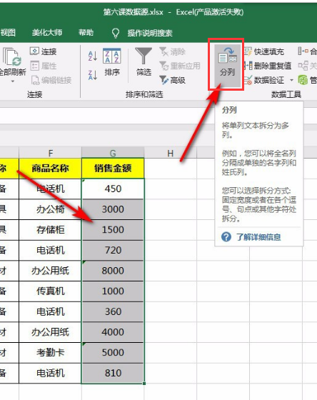 5.具体解决办法就是:选中这些带绿色小三角的格子,然后在工具栏里找到“分列”这个功能,将格式改为常规就可以了