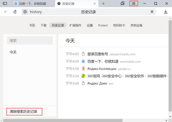 6.YandexBrowser和我们平时用的浏览器一样,可以清除搜索历史记录。点击YandexBrowser浏览器右上方的“≡”,从中点击“历史记录”便可以实现。