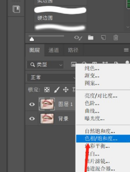 2、点击图层面板下方的第四个按钮,选择“色相/饱和度”,如图