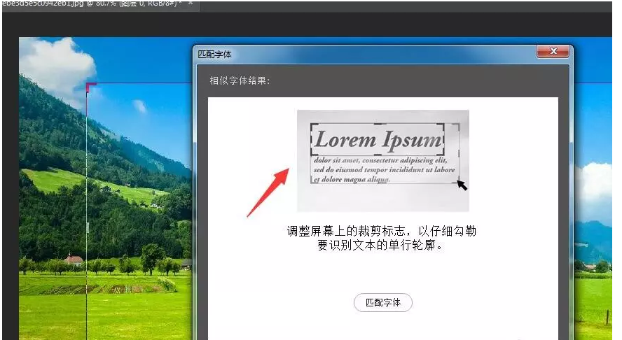 当然了,你也可以直接针对屏幕上的裁剪标志进行调整,如图,选择相应的文字区域,此时会自动搜索并显示匹配的字体,