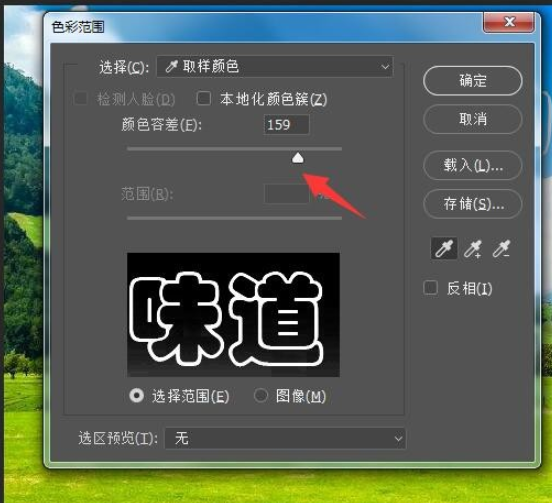 在菜单栏中点击【选择】——【色彩范围】,框选文字区域,