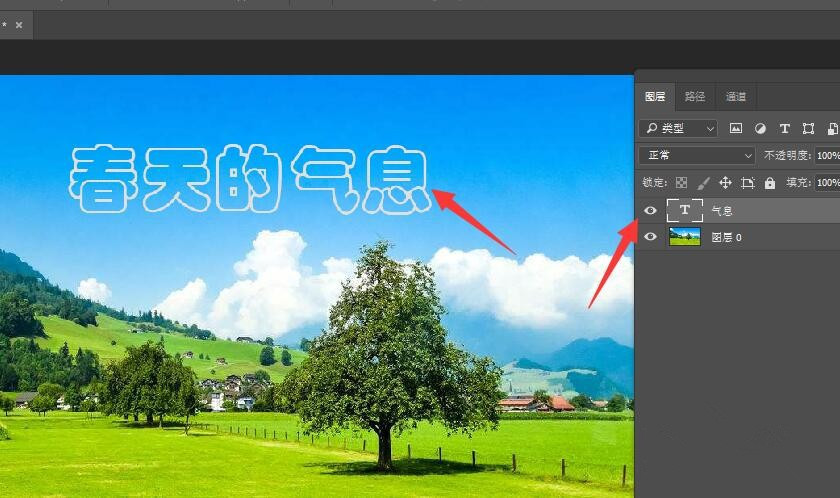 此时选中文字图层,借助移动工具将文字拖动到相应的位置,