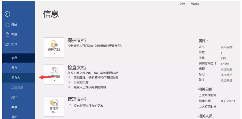 首先打开Word文档,如图,点击上方菜单栏中的【文件】——【另存为】,