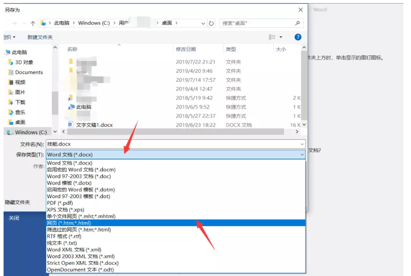 出现另存为窗口,如图,将文件设置存放到桌面,选择【保存类型】为网页格式,