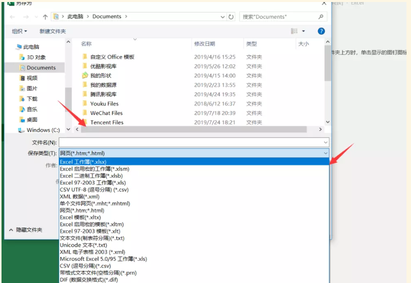 最后点击上方的【文件】——【另存为】,弹出窗口,将Excel文件保存类型修改为工作薄。