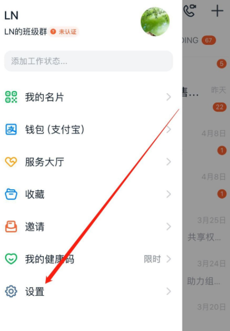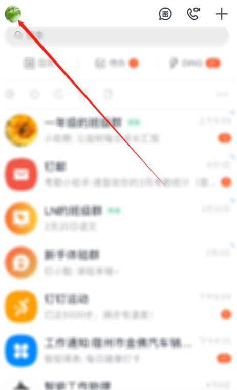 在手机中打开钉钉,登录软件,如图,点击左上角的个人头像,