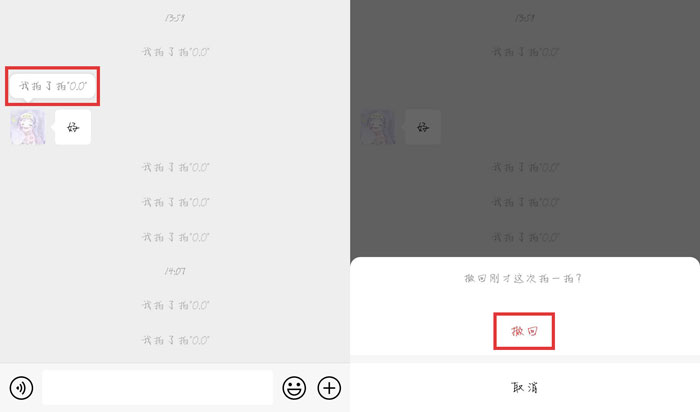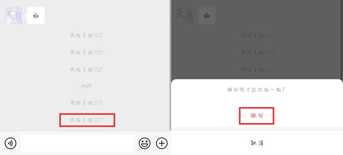 3、在拍一拍对方之后的2分钟之内,可以通过长按拍一拍消息提示,弹出撤回窗口选择【撤回】。
