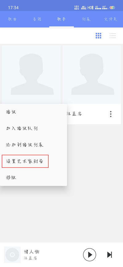 4、最后就可以看到歌手的照片已经更换了,不再是灰白的默认照片;