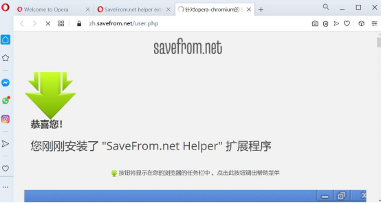 5.当安装完成后,Opera浏览器会提示插件安装完成。