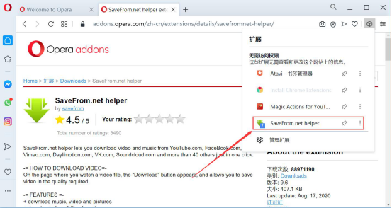 Opera浏览器插件使用教程
