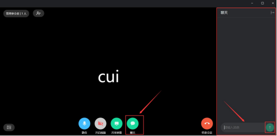 9.在有道云会议中,我们还可以点击“聊天”按钮打开聊天窗口发送消息。