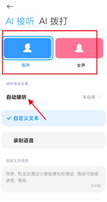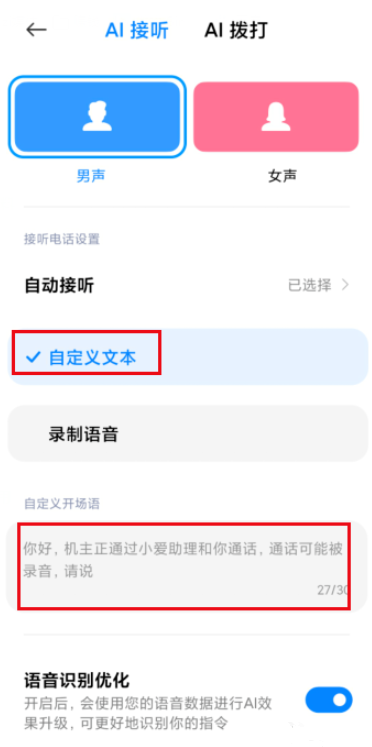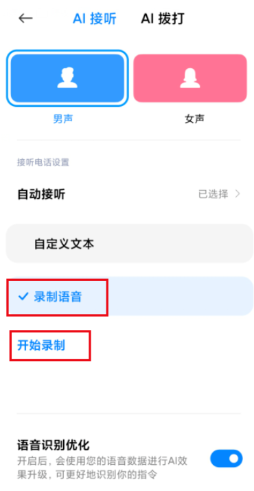 如果选择【录制语音】,录制自己的声音,AI接通后会自动播放录音,