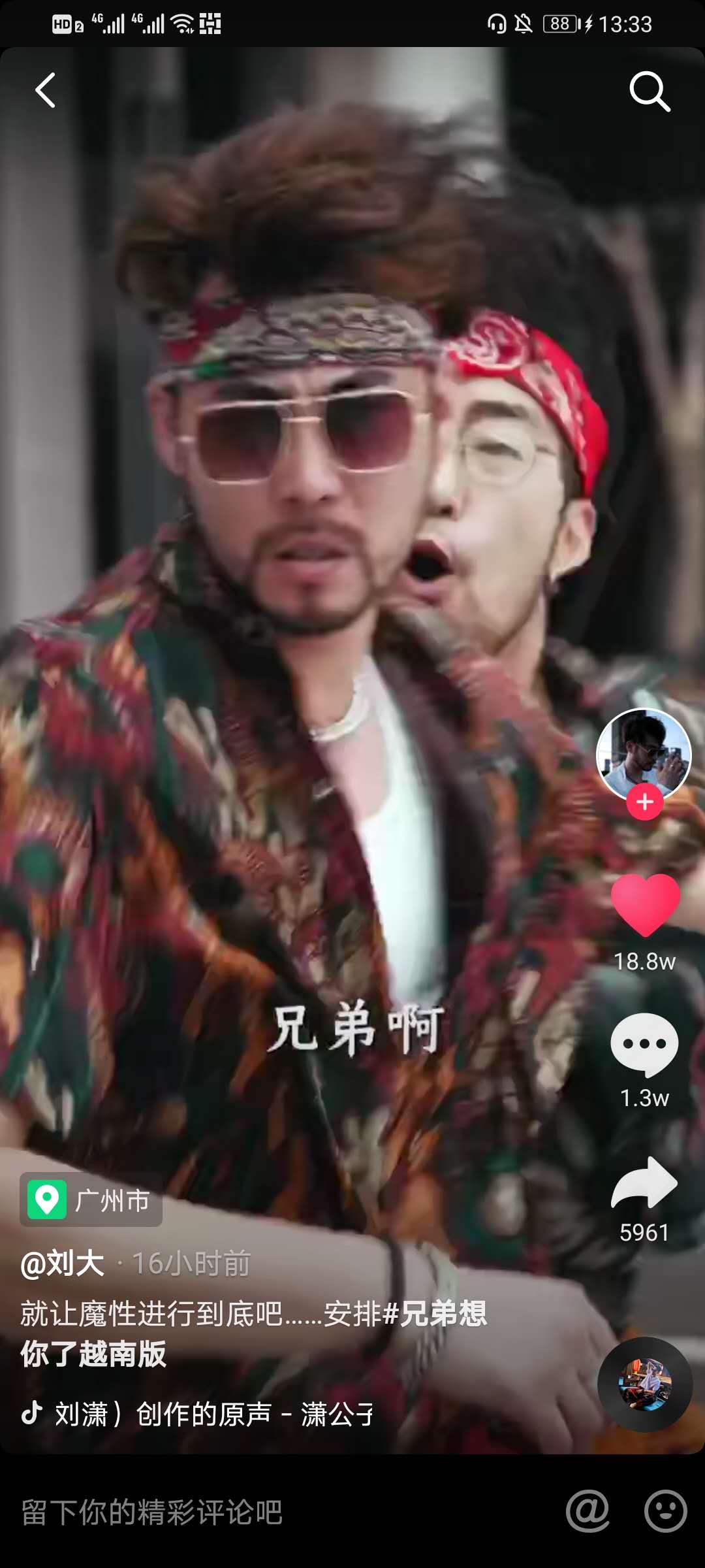 大家在抖音上听到的这首非常好听的歌曲名字叫做《Huynh Đệ À (SON2M Remix)》,这首歌是有越南一位歌手翻唱的歌曲,这首歌在抖音上被一个叫做“三斤哥流浪在越南”的抖友我来教你出来,基本每个视频都配的这首歌曲,不仅以此歌抒发出自己在国外流浪想念家乡的感情,又给众多远在他乡打工工作的抖友产生共鸣,从而让这首歌在抖音上爆火,接下来让我们一起试听下这首越南版的《兄弟想你了》。