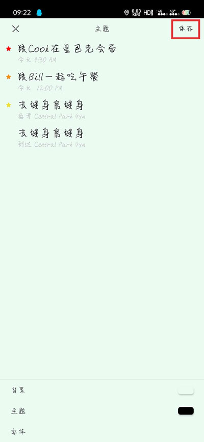 6、除了可以设置背景颜色之外,还可以设置主题(字体颜色),以及字体,最后点击【保存】保存设置;