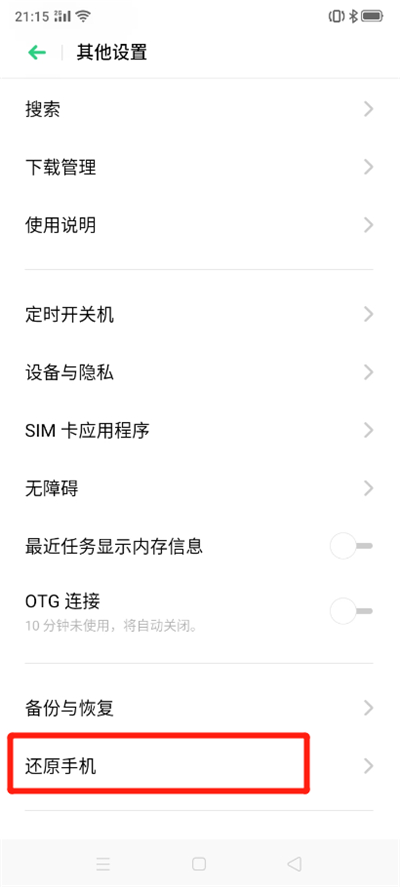 2、点击【其他设置】,点击【还原手机】进入以下相关界面。