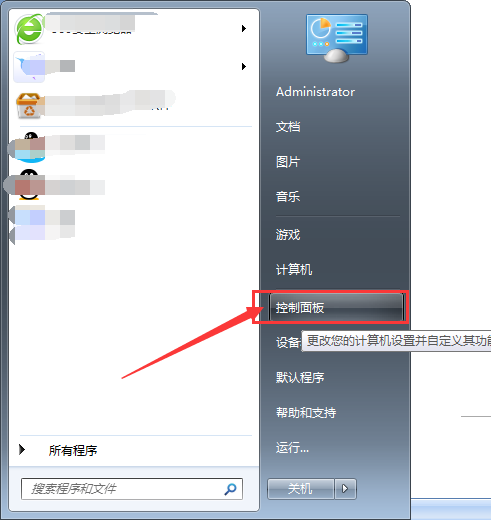 1、点击桌面开始,在其上拉菜单中找到【控制面板】并点击打开。