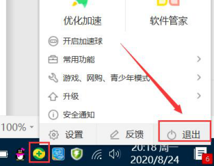 5.如果头榜直播盒子的直播特效还是出现闪退的话,那需要退出360安全卫士。右键单击电脑任务栏处的360安全卫士,并在右键菜单中,点击“退出”按钮。