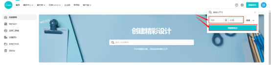 4、弹出在自定义尺寸对话框,输入要制作的图片像素参数,比如输入550*228,然后点击【创建新设计】。