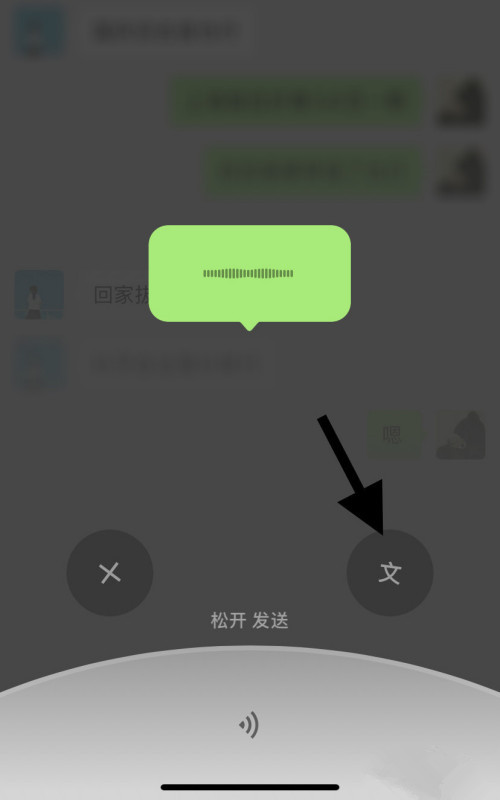 说完语音内容,点击右侧的【文】选项,