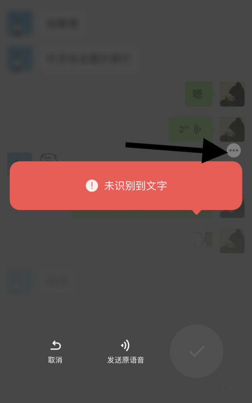 如图,显示“未识别到文字”,点击右侧的三点图标,