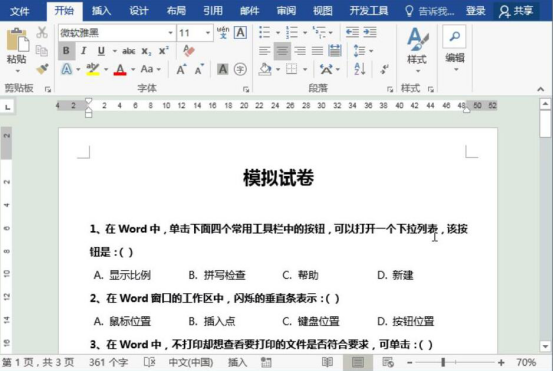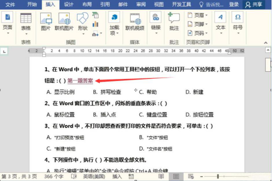 下面,我就以一份模拟试卷为例子,为大家讲解如何在word文档设置书签超链接,实现问题和答案的快速跳转。