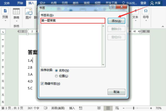 Word文档设置书签超链接的方法步骤
