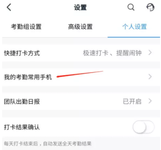 进入个人设置页面,点击【我的考勤常用手机】选项,