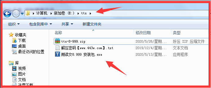 3、下载朗读女软件安装包并解压到【tts】文件夹中。