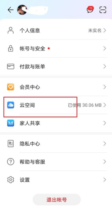 进入个人中心,如图,然后点击【云空间】,