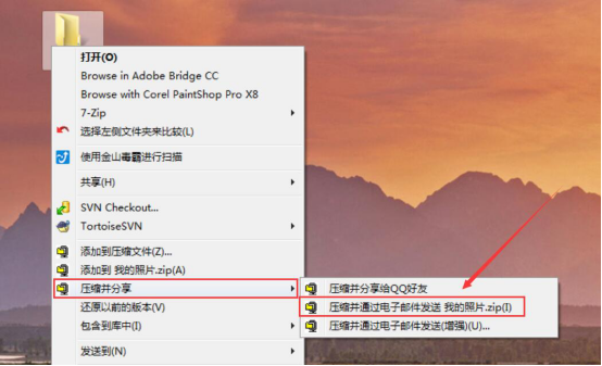 7.接着,我们右键单击需要发送给别人的文件,并在右键菜单中点击“压缩并我来教你”,再点击其子菜单中的“压缩并通过电子邮件发送”。