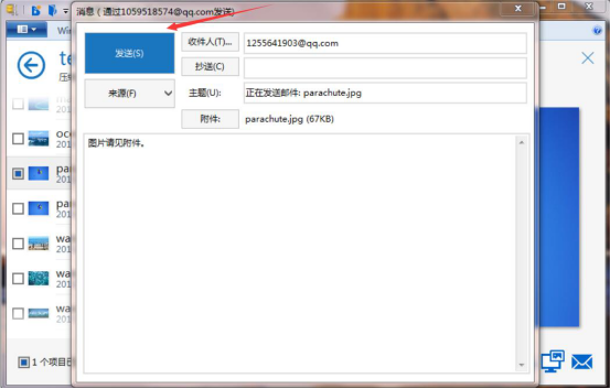 8.此时,WinZip便会弹出邮件发送的窗口。在此窗口中,输入收件人的电子邮箱、文件主题,也可以添加附件,之后点击“发送”按钮,WinZip便会将该文件通过邮箱发送给别人。