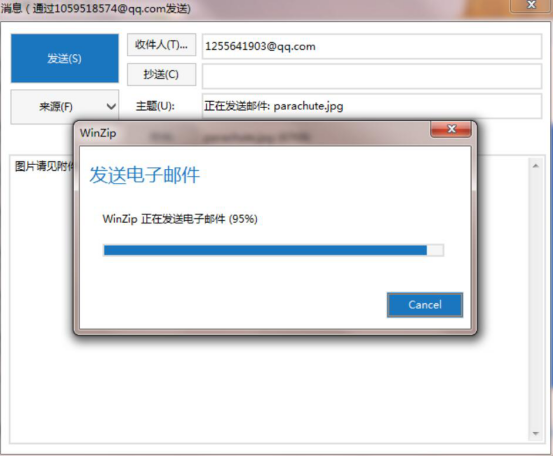 9.最后,从WinZip中实时了解到发送的进度。当进度为100%时,别人就能通过邮箱接收到该文件了。