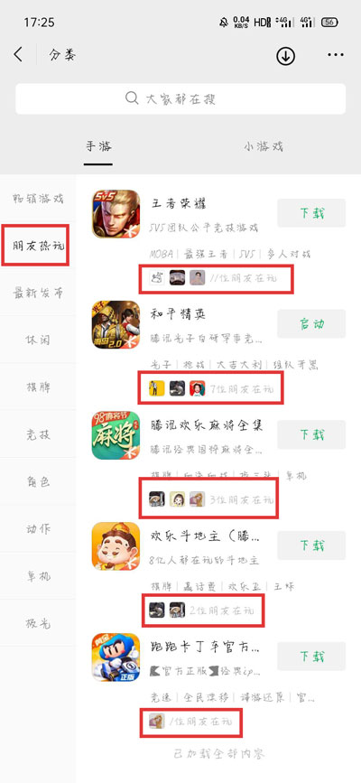 4、切换到【小游戏】同样可以看到好友在玩的小游戏;
