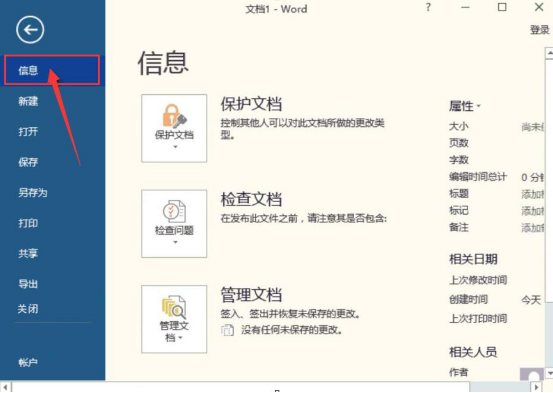 3.然后,点击“文件”菜单中的“信息”选项。
