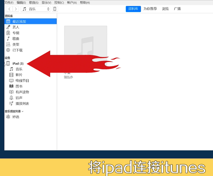 2.加下来就是将ipad跟电脑端的iTunes连接上