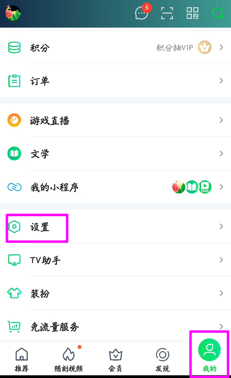 进入个人中心,如图,点击【设置】选项,
