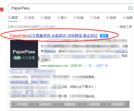 1、在搜索引擎(比如百度)中搜索paperpass,点击进入paperpass官网。