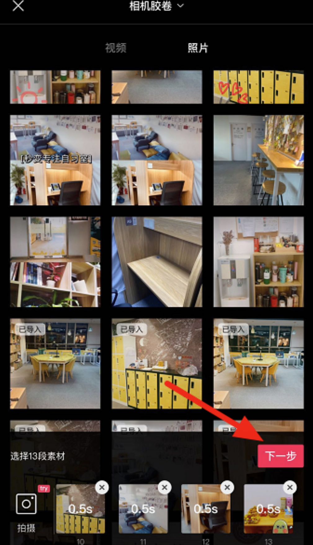 4.选择自己的游戏截图,总共13张,然后点击“下一步”。