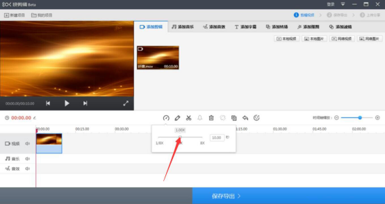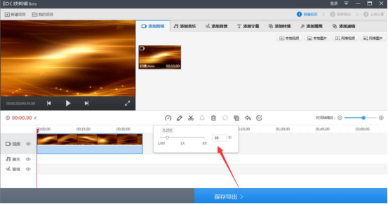 5.当视频的播放速度调整完毕了,最后,我们点击快剪辑界面下方的“保存导出”按钮即可将调整了播放速度的新视频保存下来。