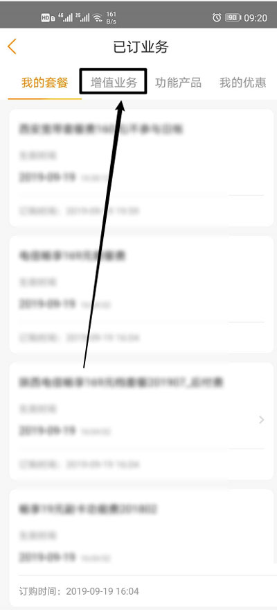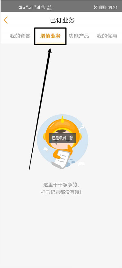4、然后在上方切换到【增值业务】查看所有可取消的业务;