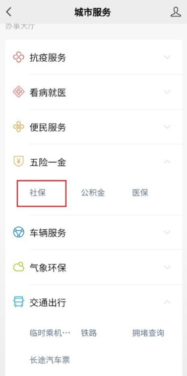 进入城市服务窗口,如图,点击【社保】,然后点击电子社保卡,