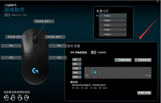 4.此外,我们用Logitech Setpoint玩游戏的时候还可以设置它的指针灵敏度,根据自己的操作习惯来设置即可。