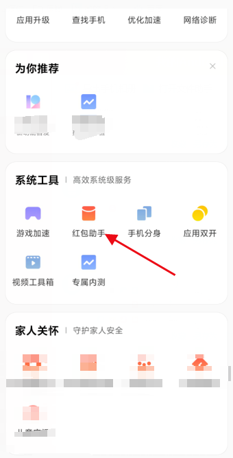 如图,点击【系统工具】——【红包助手】,点击【开启小米红包助手】,