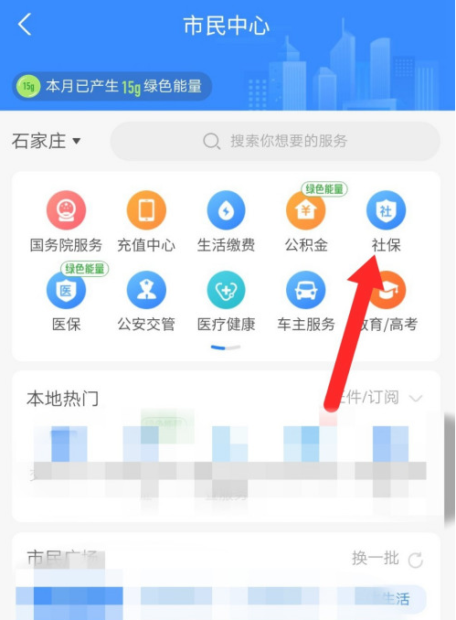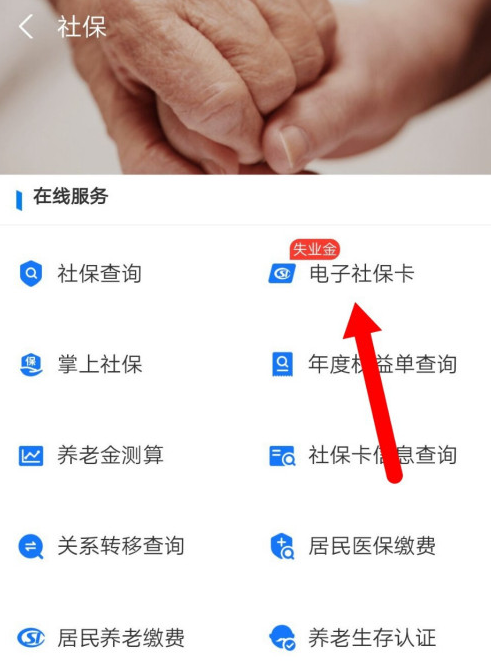 进入市民中心,在以下界面中点击【社保】,选择【在线服务】——【电子社保卡】,