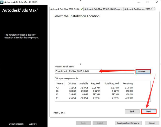 9.接下来,点击“Browse”按钮,选择3dmax2010安装的路径,并且点击“Next”按钮。