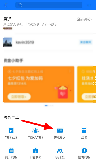 现在很多人已经习惯了使用支付宝进行日常付款,例如交房租,为了方便,大家一般会互加好友进行转账。对于一些非常在乎隐私的用户而言,他们并不想添加陌生人为好友,那么为了方便转账,小编建议使用支付宝提供的“转账名片夹”功能,不用添加好友即可进行转账操作。