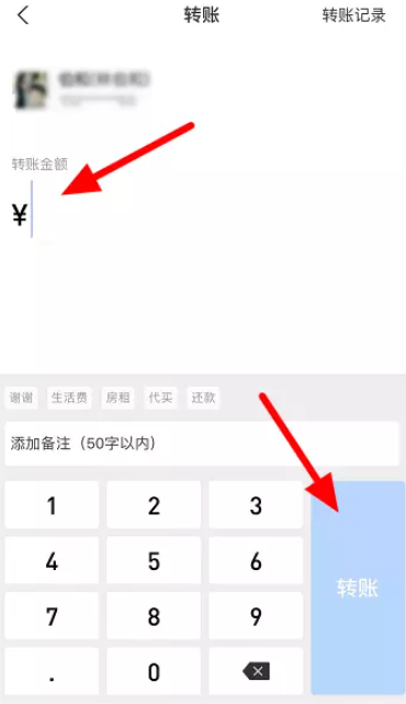 进入转账窗口,如图,输入金额,点击【转账】,最后点击【立即付款】即可。