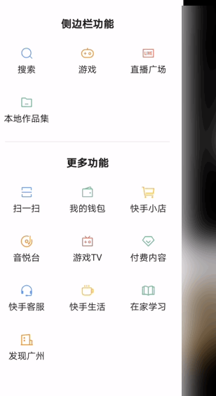 展开侧边栏功能,如图,点击【更多功能】——【快手客服】,