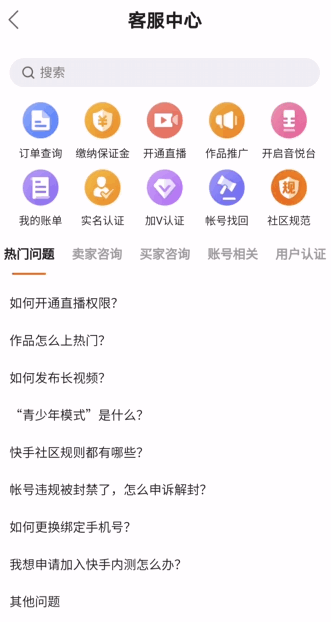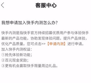 进入客服中心,查看热门问题,点击【申请加入快手内测】,