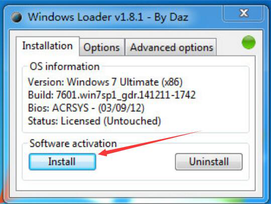 2.然后,进入windows loader激活工具操作界面。我们点击“Install”按钮。
